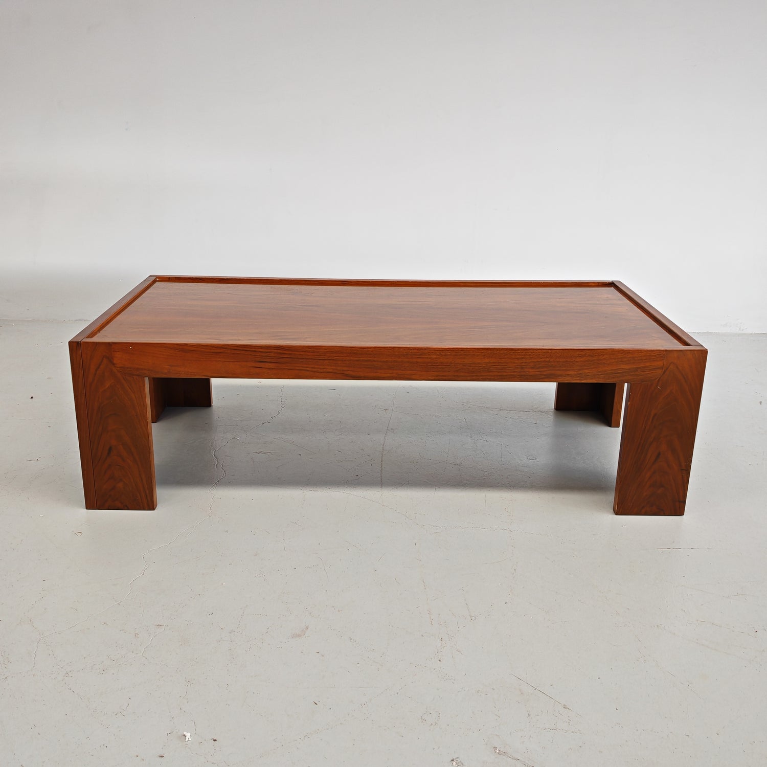 Tavolino rettangolare in noce vintage anni 70 nello Stile di Afra e Tobia Scarpa.