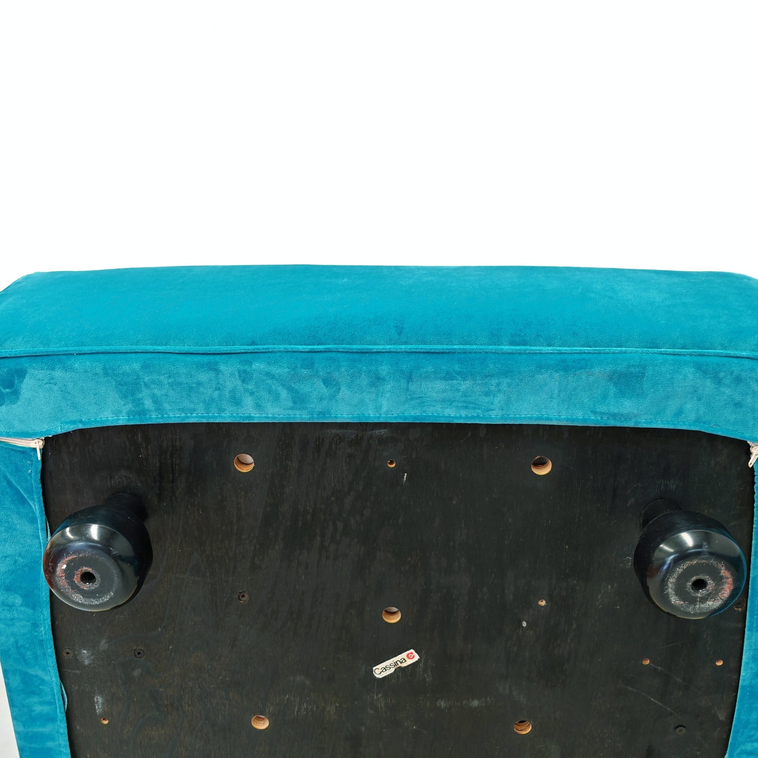 Condizioni: il divano è in condizioni pari al nuovo con rivestimento nuovo in velluto azzurro.